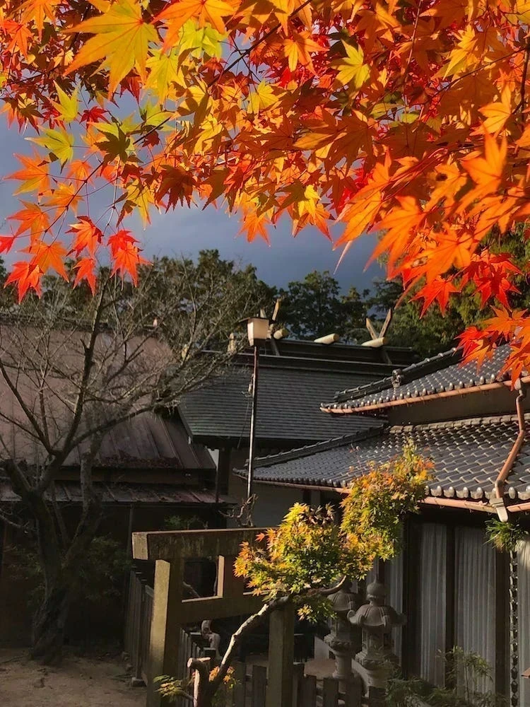 参道をゆっくりと上りながら、黄色や赤色に染まったもみじを見ていると、心が落ち着き、癒やされていく気がしますよ。